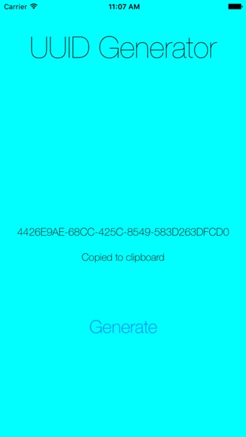 A simple and elegant way to generate a UUID (Universal Unique Identifier). Once the UUID is generated, simply tap on it to copy it to the system clipboard/pasteboard so that you can easily paste it into any desired location. Enjoy the vibrant changing background colors as you generate different unique identifiers.