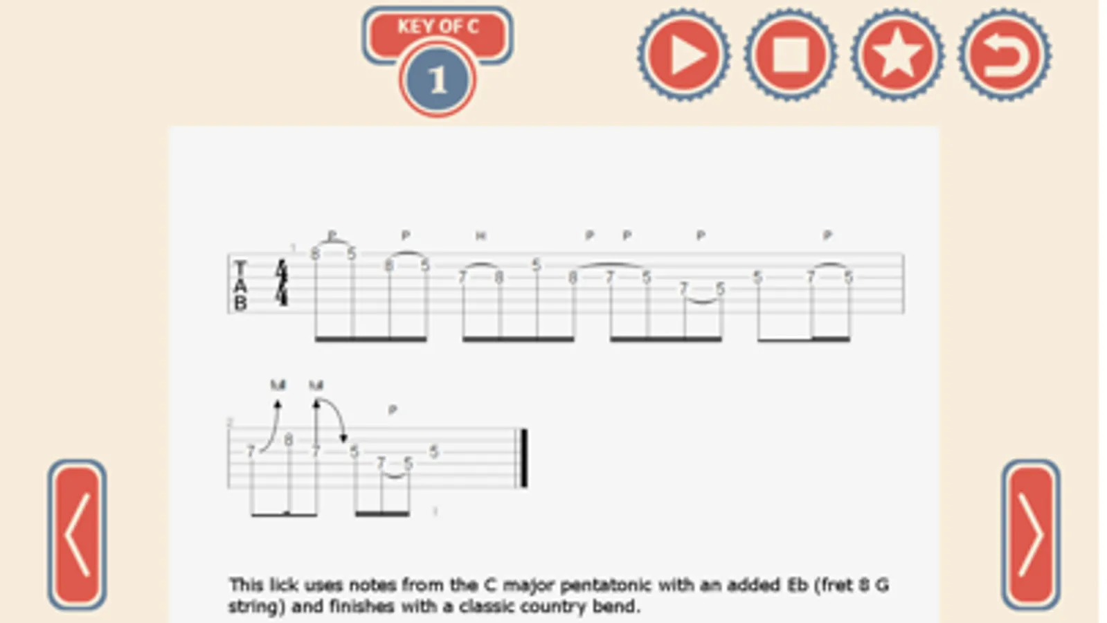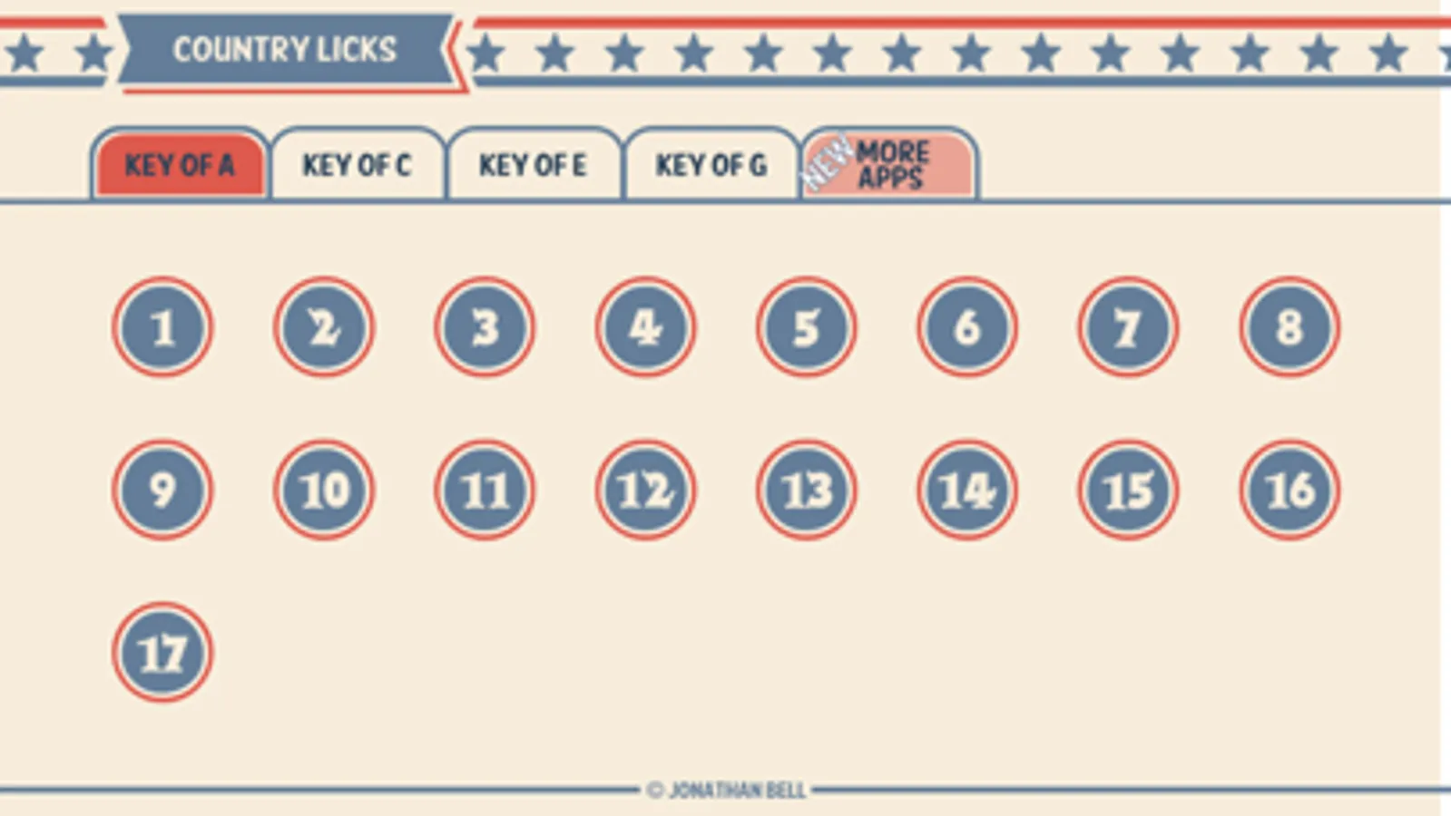 The licks are organised into the 4 most common country guitar keys C, G, A and E.