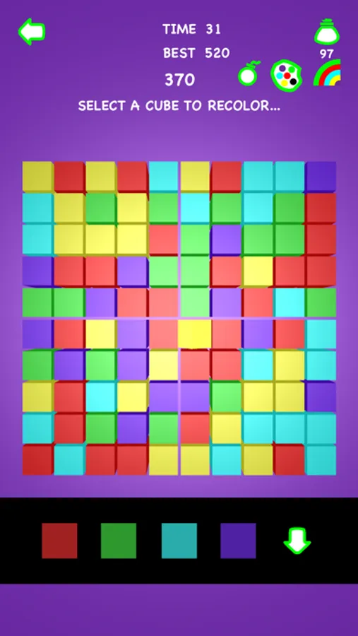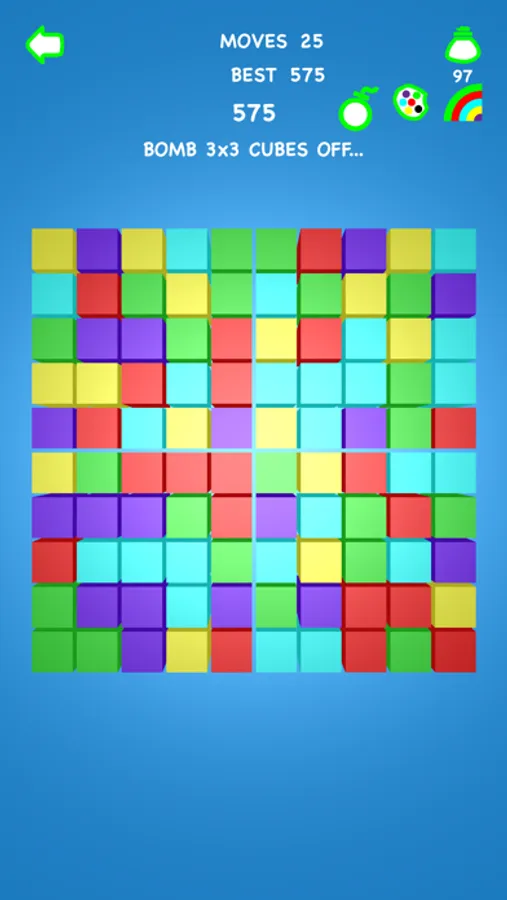 Try to clear connected cubes with the same color, more connected the score is higher.
