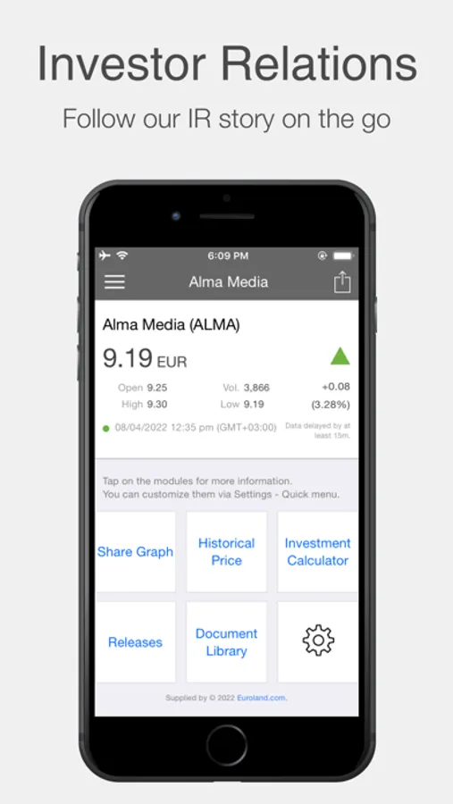 The Alma Media Investor Relations app will keep you up-to-date with the latest share price data, stock exchange and press releases, IR calendar events and much more.