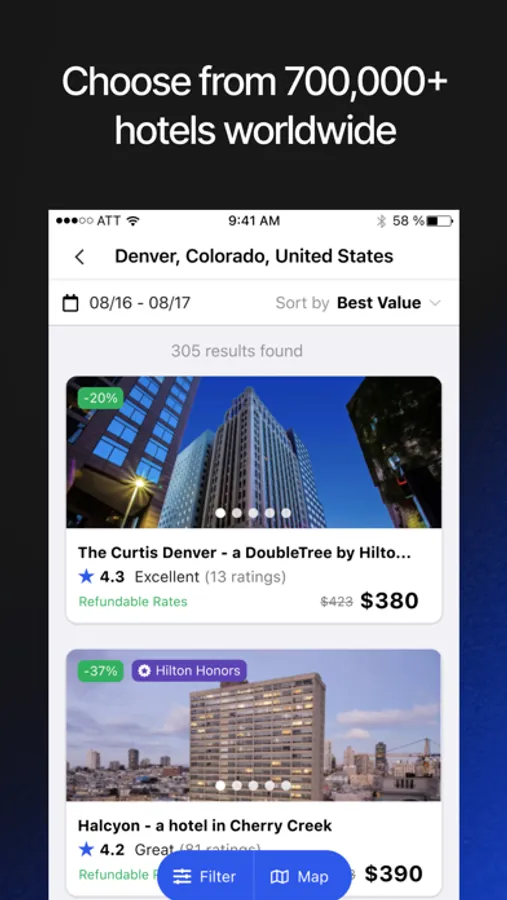 We partner with 2,700+ brands and 700,000+ properties, from your favorite familiar chains to boutique and luxury hotels.