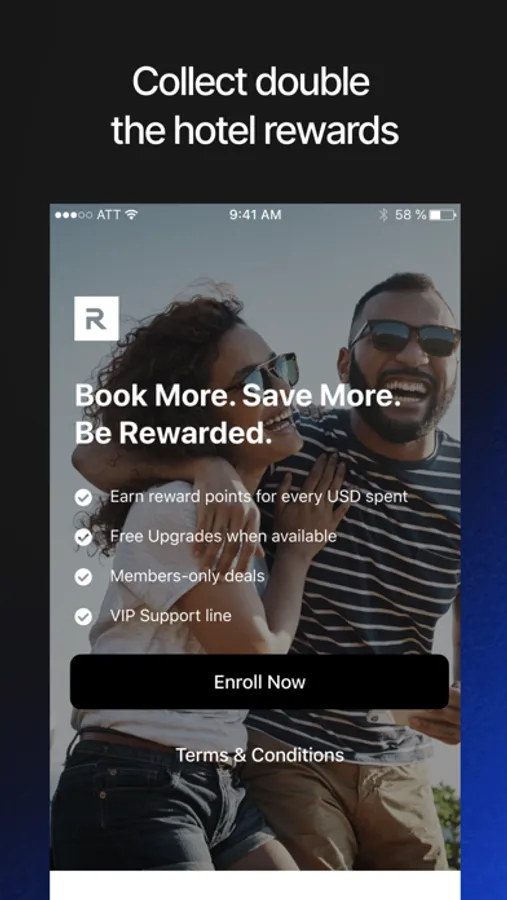 Double up on hotel rewards. Earn Hotel Engine Rewards on every booking, redeemable for hotel discounts and free nights. Plus, earn additional points for 15+ top hotel loyalty programs (like Marriott Bonvoy, Hilton Honors, IHG Rewards and more) when you book eligible rooms.