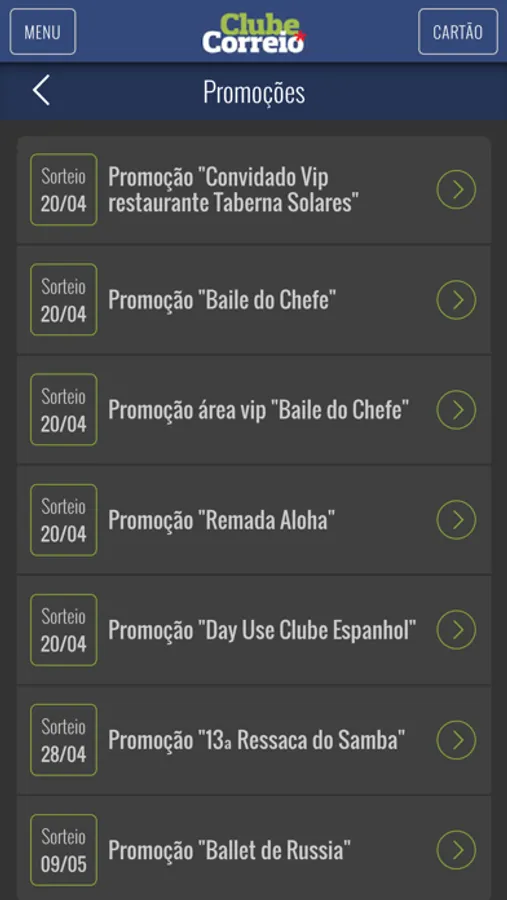 Além dos descontos em diversos tipos de estabelecimentos comerciais, o Clube Correio oferece frequentemente promoções exclusivas para os seus associados no seu aplicativo. Oferece descontos exclusivos que variam entre 10% e 50% em ingressos de shows, cinemas, peças, dentre outros benefícios.