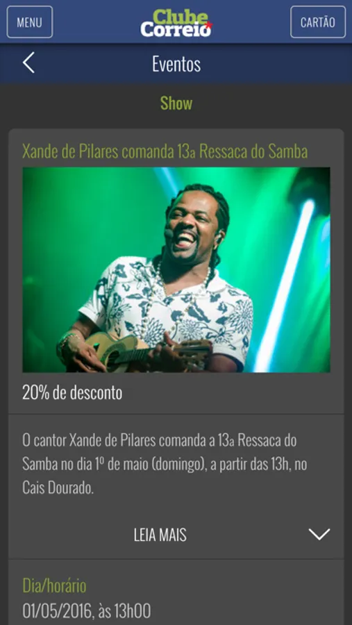 * Próximos shows, peças, exposições e eventos com descontos