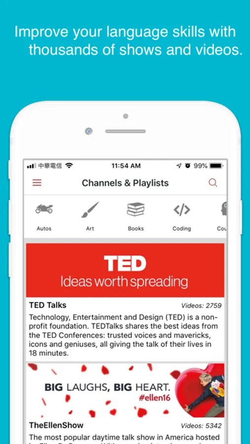 • Discover videos in the language you’re learning. Explore by topic, channel name, or view videos by popular teachers on Youtube