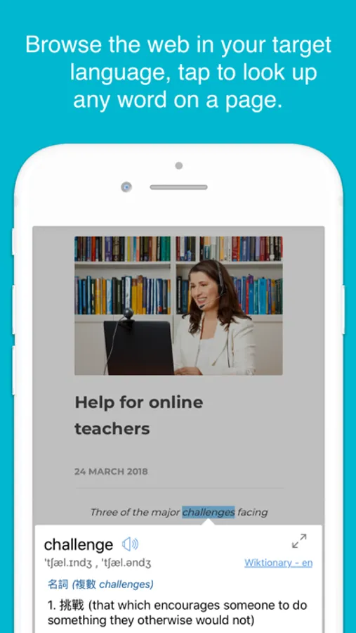 • Browse popular news sites in the language you’re learning with the Woodpecker web browser, touch any word to see its meaning