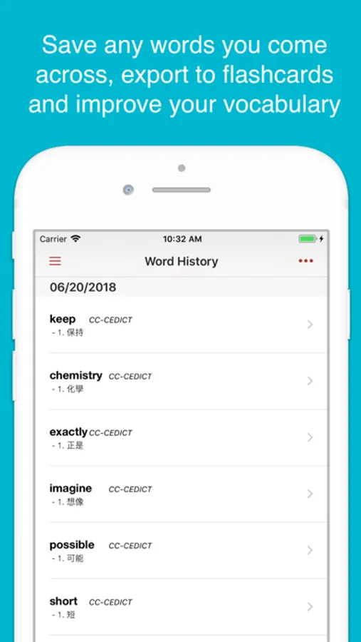 • See all the words and expressions you’ve looked up in your word history; review them and practice with pronunciations