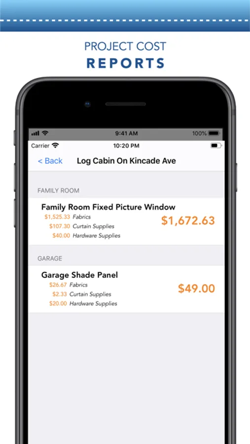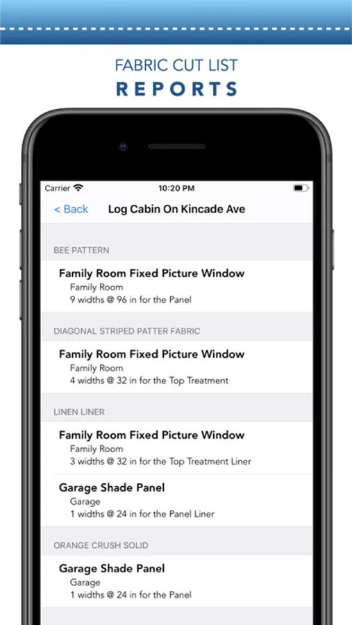 The app manages the library of Fabrics, Supplies, and Mounting Hardware for use across all designs