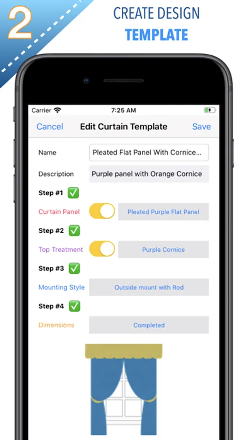 Design a custom curtain template with panel and/or top treatment to add to the library