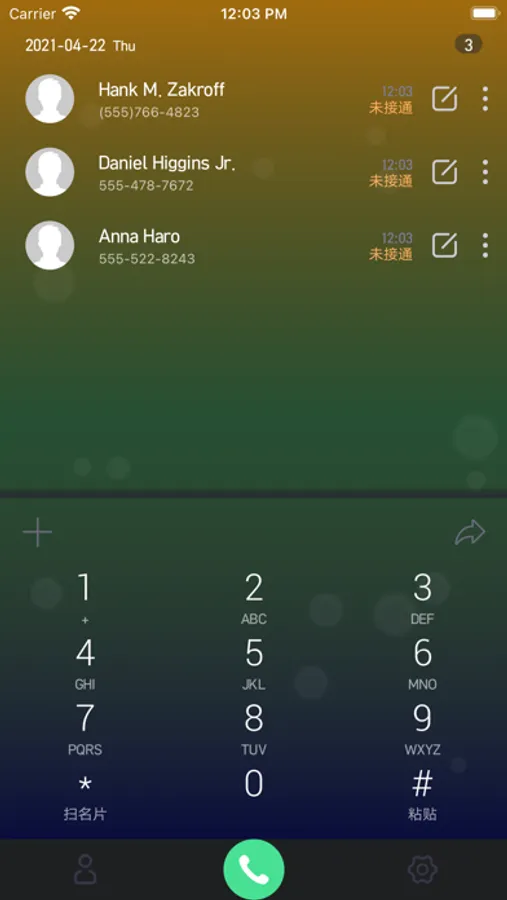 + Statistically call durations,numbers by day/week/month/year,and showed with rich chart view;