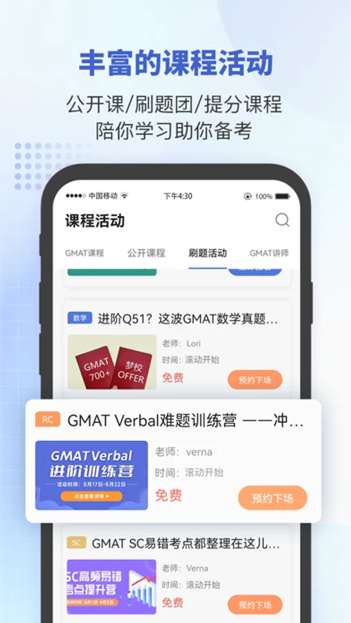 错、CR逻辑、RC阅读和Quant数学等全部考试内容,全官方题源助你科学备考。