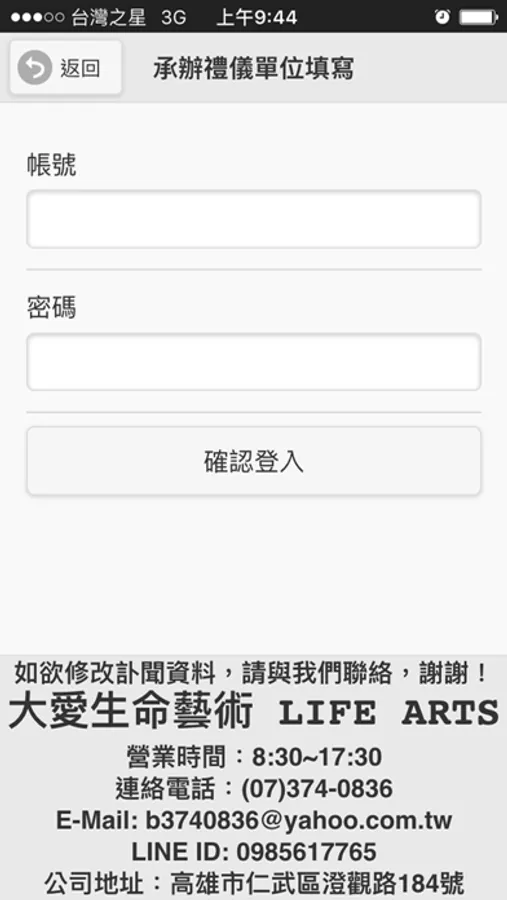 本APP分為兩個部份,分別為禮儀社填寫及家屬填寫的部份,請禮儀公司將部份資料填寫完畢並建立檔案,再請家屬下載本APP並且進入完成另一部分的資料,兩部份彙整完成之後,會連線至後端進行訃聞打稿製作。