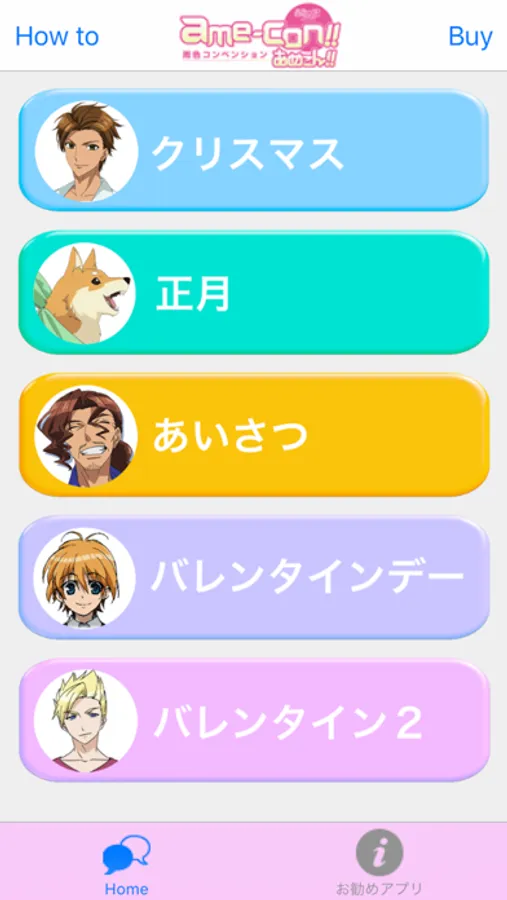 声優ボイスを再生したり、保存してLINEその他のメッセージアプリで送ることができます。
