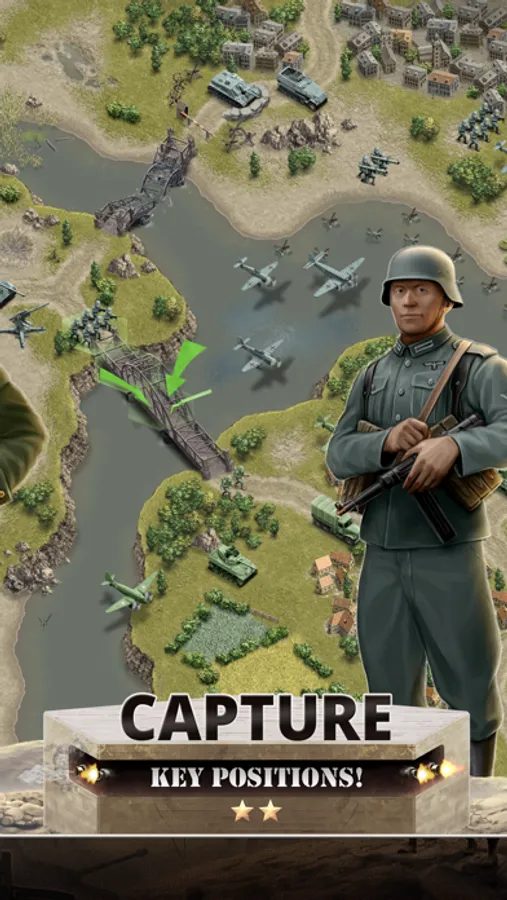 Battle your way through the enemy lines by land, by sea and in the air! Lead your soldiers into battle and crush your enemies on the historical battlefields!