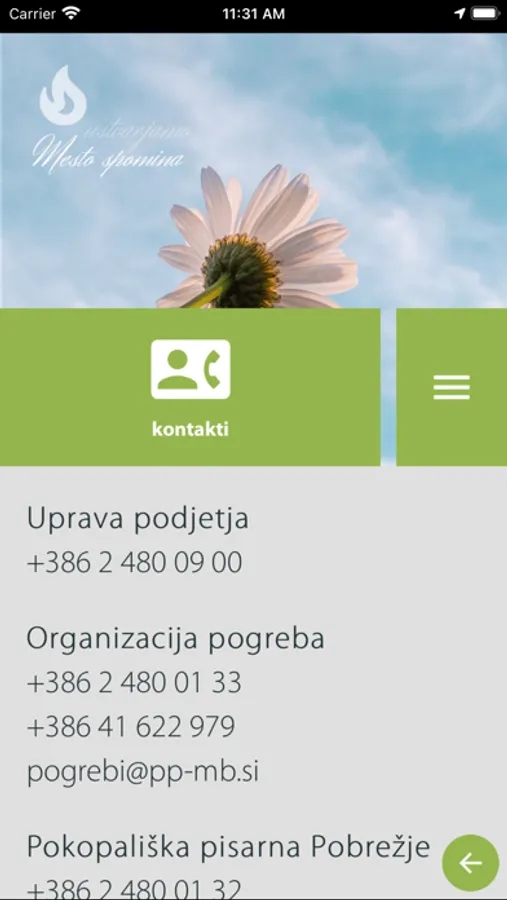 - hitro najdete kontaktne podatke našega podjetja