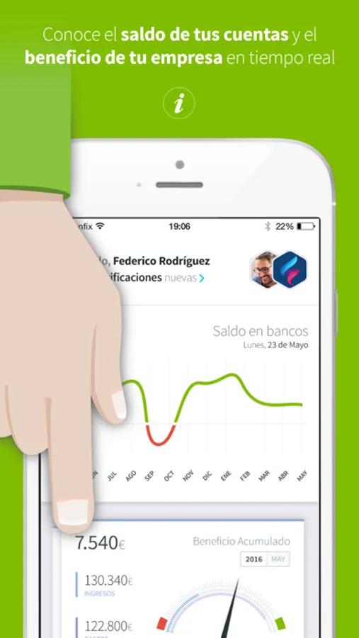 1- Crea y envía facturas al instante estés donde estés y recibe notificaciones en tiempo real una vez tus clientes hayan recibido, descargado o pagado tus facturas. No perderás ni un detalle del estado de tu facturación.