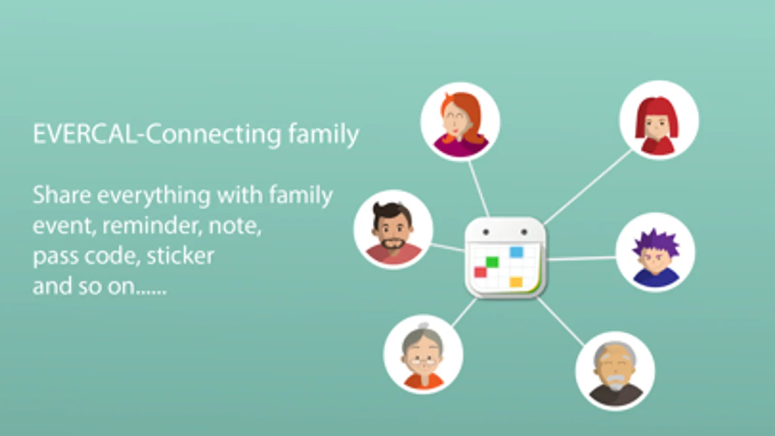 -Easily share your schedules. Do you have a large family with a confusing list of things to do and appointments to keep? EverCal is here for help with schedule sharing. This is a perfect solution which allows whole family members to share their schedules, notes and to-do lists. Simply create a family and join to it, and EverCal will do all the hard works automatically and intelligently. All materials are easily recognizable since EverCal uses different color codes for each family member.
