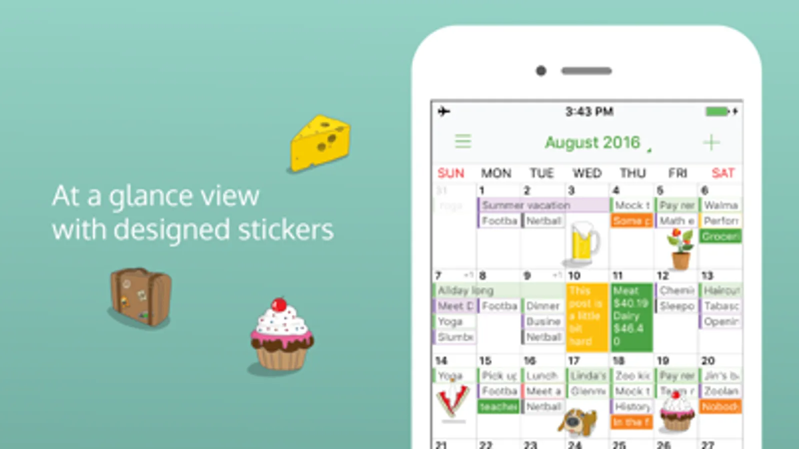 -Custom color-code your schedule according to activities like work, home, project or private.