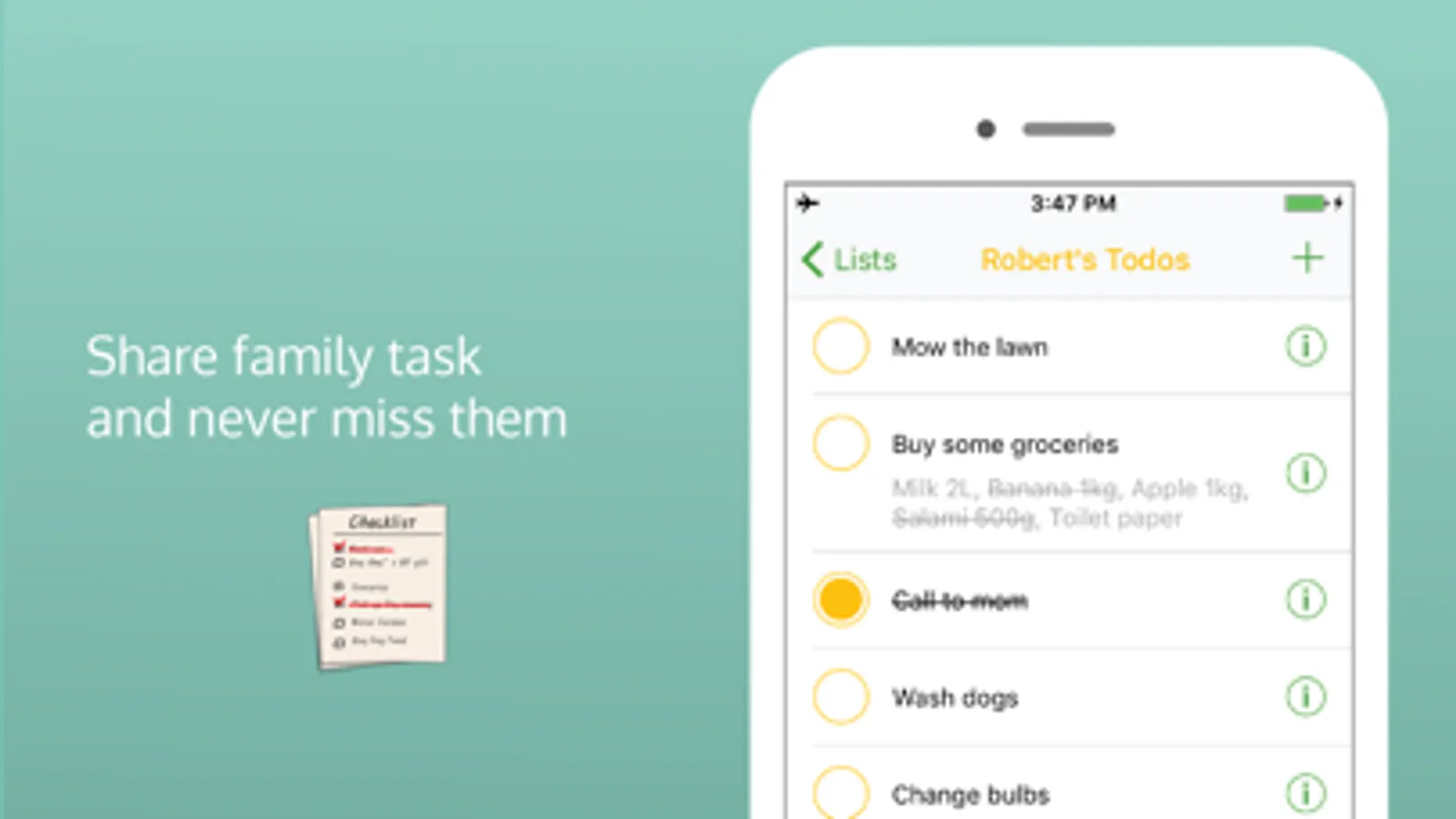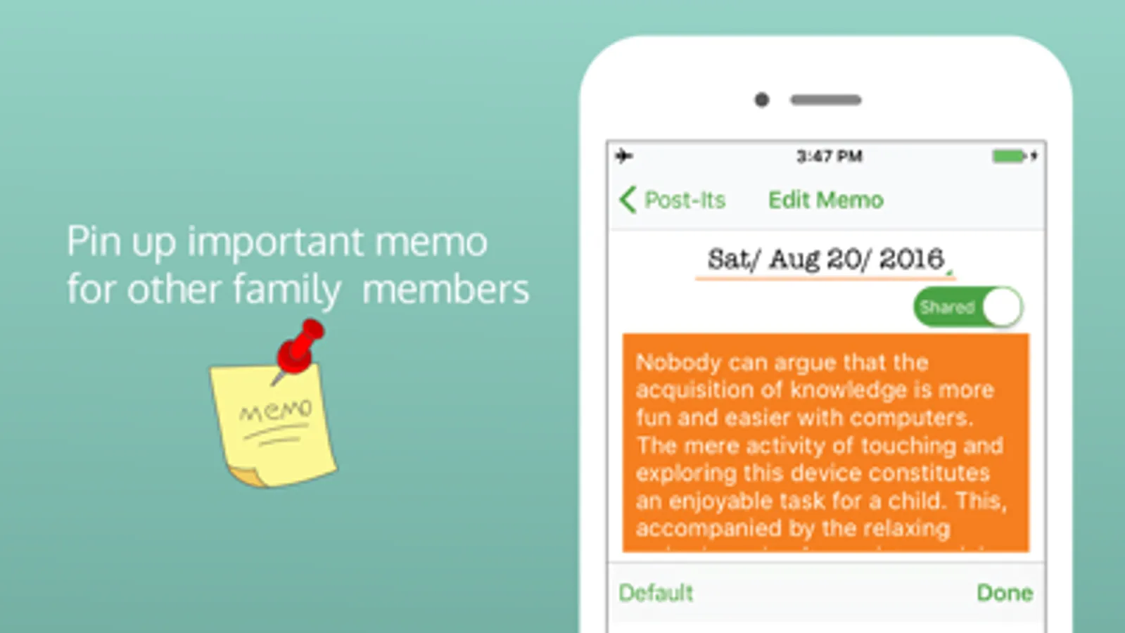 -Create a family calendar and share all family schedules, notes and to-do lists.
