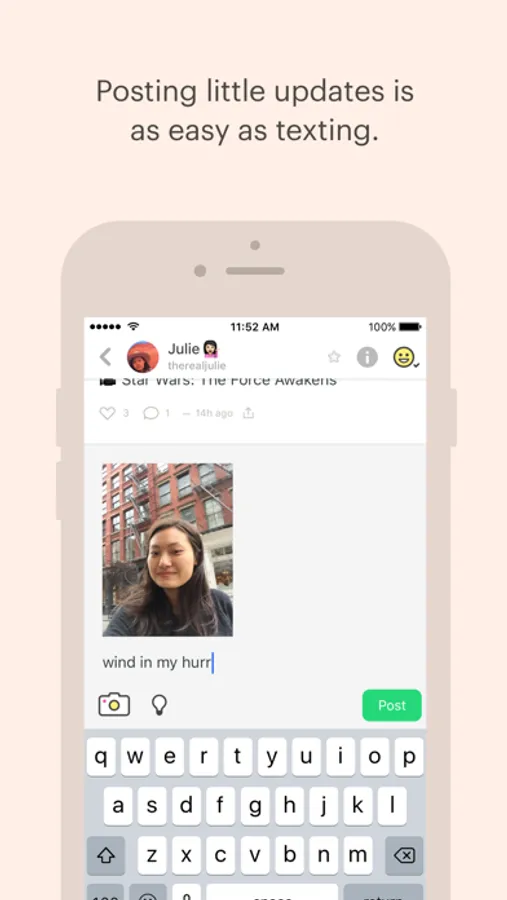 Peach lets you share what you feel, think, see, hear, and do—vividly. Peach connects you with friends and gives you freedom, so you can keep up with each other in a real and personal way.