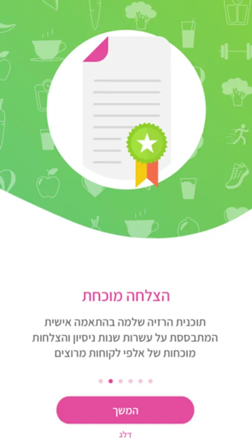 מהתפריט המתוכנן. בסוף היום תשלחו את דו"ח האכילה היומי לבדיקה וקבלת משוב אוטומטי ע"י המערכת .