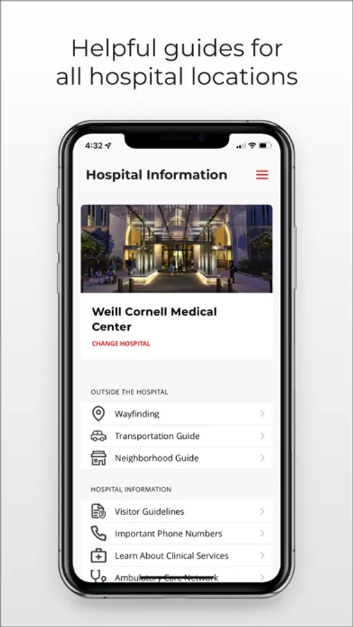 Hospital Guides: Enhance your visit or stay at any NewYork-Presbyterian hospital. Access important phone numbers, transportation & patient guides, navigation tools to help you find your way around, and more.