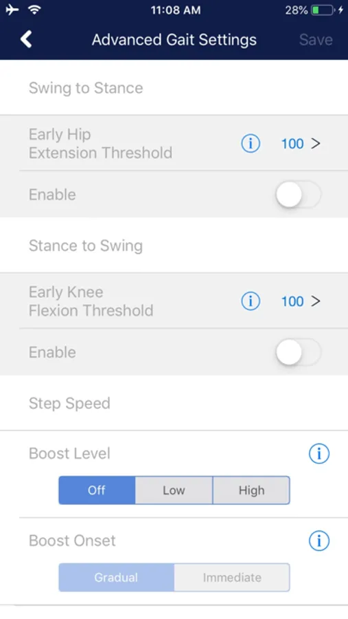 Parker HMC's Indego® mobile application allows for wireless connection to the Indego powered exoskeleton device, enabling device configuration and session monitoring.