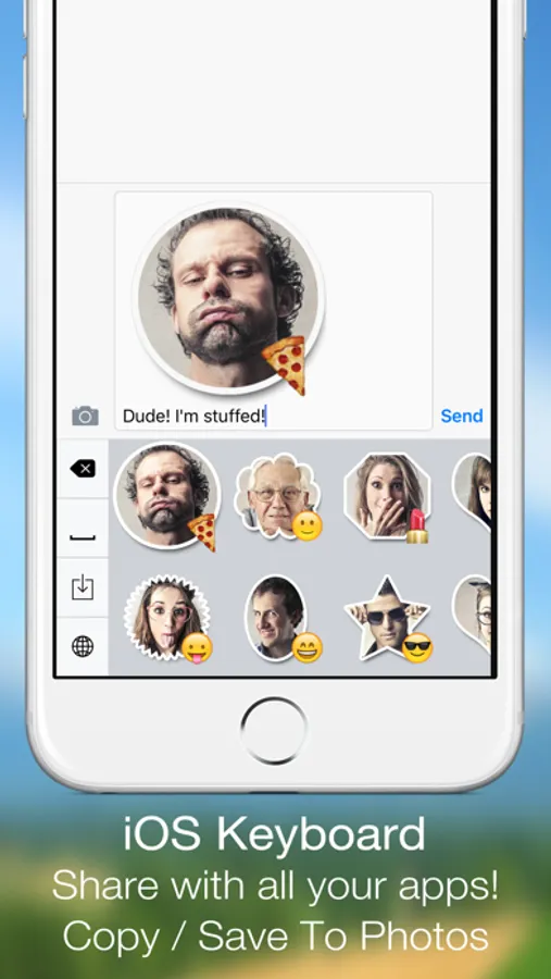 - Use the built-in custom iOS keyboard to get quick access to all your Emoji-Me stickers from within the application you are using.