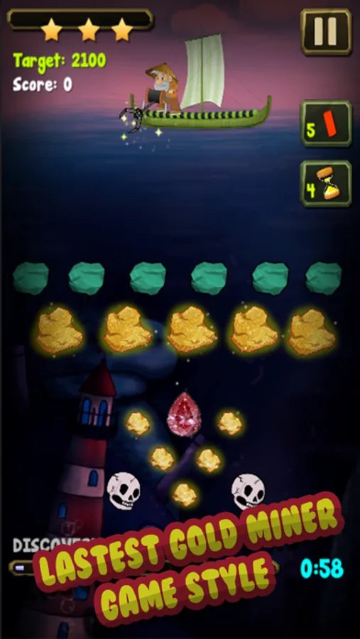 Gold Miner 3: Ocean and Diamond is the #1 mobile version of your favorite classic gold rush game but provides a wilder experience than you've ever played before. This game is a gold mine really, each level is a gold mine, with several kind of gold and diamond. Your mission is get all the gold using the hook on the boat. In this game you can see many type of gold : fish and diamond, diamonds and jewelery gems or the golds. But it's not easy for the gold rush, because of the baricades, like tnt bomb, rock and the moving fishes, so keep calm and be concentrate on the hook and got the best score for you. Do you see the california city in this game? Yes, that's it. We put the gold miner on the sea beside california. The beautiful city in the world, california! Let's discover the ocean of this place!.