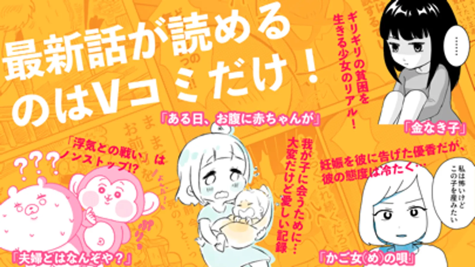幅広いラインナップの漫画が、スマホにぴったりの縦スクロールで読める「Vコミ」を、ぜひお楽しみください。