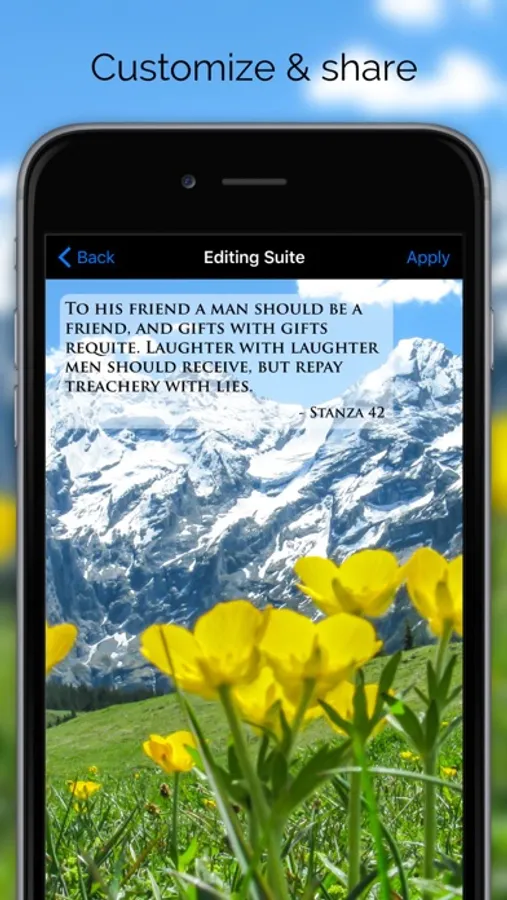 Packed with all sorts of extra content like: Tons of beautiful images to choose from or use your own, a quick editor to change the look of the app and an editing suite that lets you fully customize the look of your quotes.