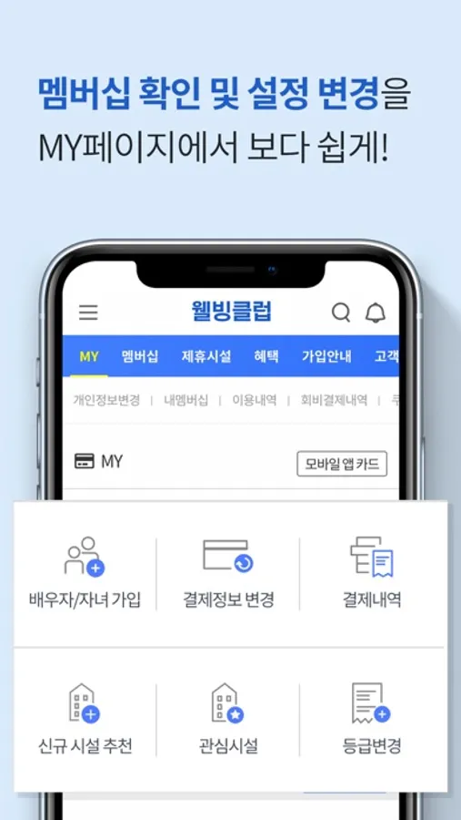 웰빙클럽은 전국 어디서나 멤버십카드 하나로 각종 스포츠 및 문화시설을 이용할 수 있는 유비쿼터스형 멤버십서비스입니다.