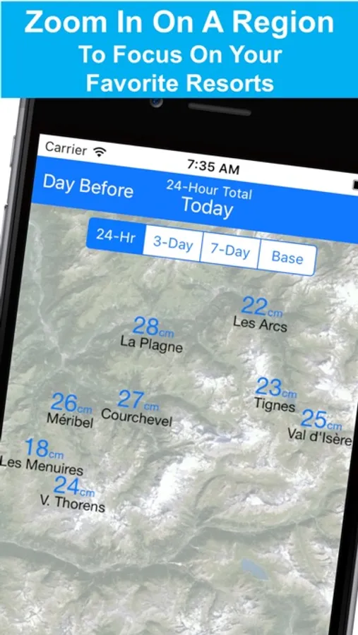 - Zoom in to your favorite part of the Alps to focus on the resorts you care most about. When you reopen the app, Alps Snow Map will take you right back to the region you were last viewing.