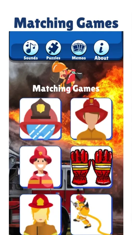 The activity app also comes with an emergency matching game , and many beautiful, real fireman puzzle games.