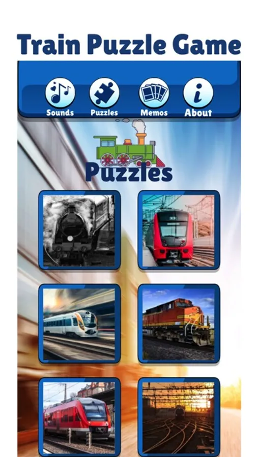 - 10 Real, high quality puzzles for 3 difficulty level with steam-engine, locomotive and trains