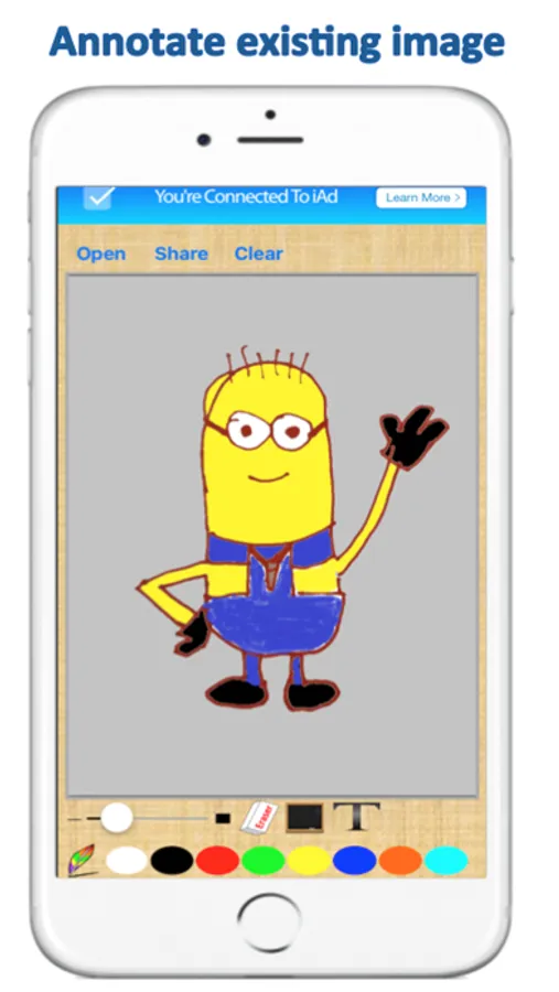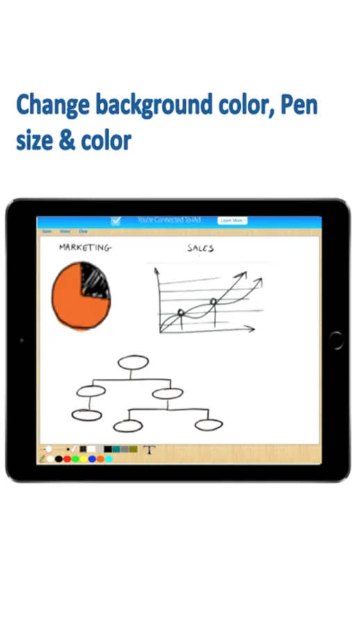 You can change the marker sizes, and choose different colours for the marker and background. You can also open existing file to edit/annotate. Your work at Sketch iBoard can be saved together with the background as image and printed out.