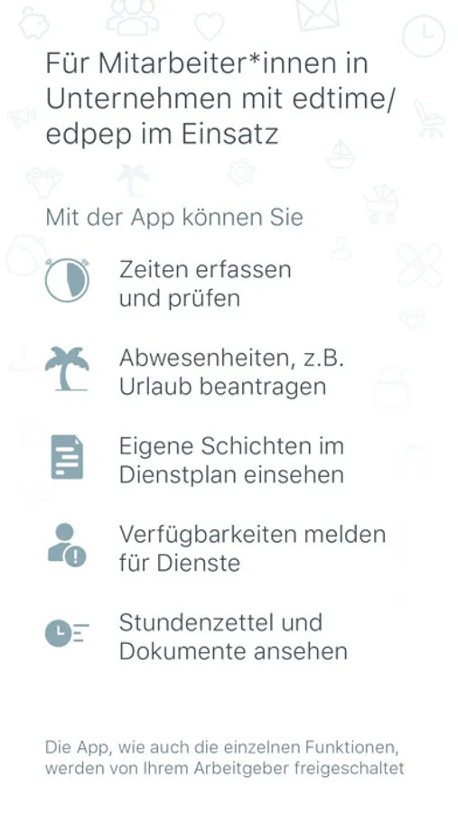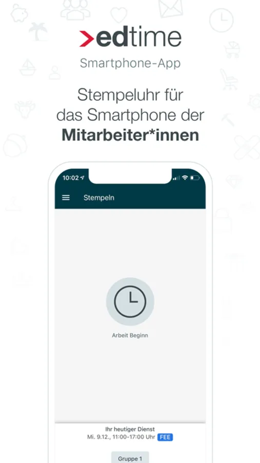 edpep verbindet Mitarbeiter und Arbeitgeber für optimales Arbeiten. Mit der digitalen Stempeluhr können Arbeitszeiten, Unterbrechungen und gesetzliche Pausen einfach über das Smartphone eingestempelt werden.