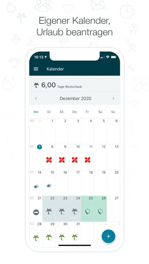 EINFACHE PLANUNG: Abwesenheiten eintragen, spontan verfügbare Tage markieren oder sogar Urlaub beantragen wird mit dem Kalender jetzt noch einfacher. Der Mitarbeiter markiert die betreffenden Tage - schon wird die Anfrage an den Arbeitgeber versandt und kann mit in die Planung einbezogen werden.