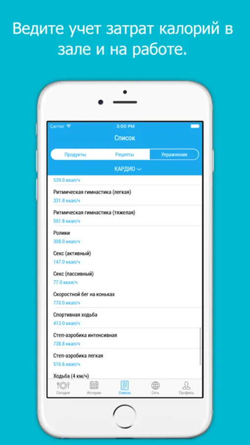 Depending on the chosen goal (to lose weight, save weight or gain weight) and your parameters, the built-in calorie calculator will calculate the nutritional program with the daily caloric intake and the ratio of FCP (Fats, Carbohydrates, Proteins).