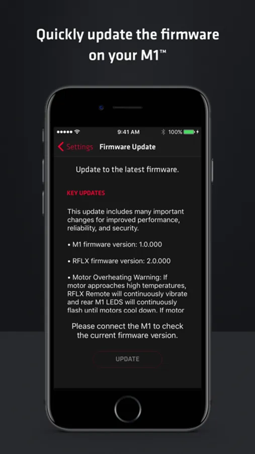 • Wirelessly update M1 and RFLX Remote firmware for increased performance and efficiency