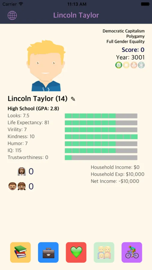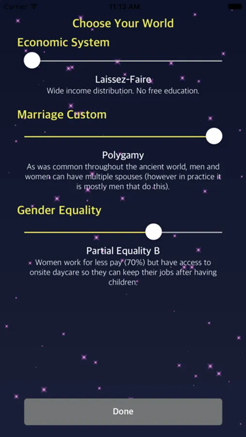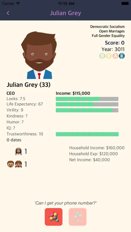 You choose what type of world you are born into but get no say in your family's social status, your attractiveness, or even your gender. Will you design a world where the most capable are free to reap the full rewards of their natural gifts or will you make a world where everyone is equal? And once in that world, will you focus on dating or self-improvement.