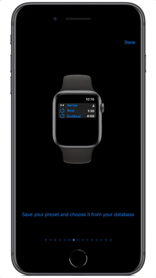 Use the Digital Crown to set the Number of Series, the Rest time and the Rest Time before the following preset