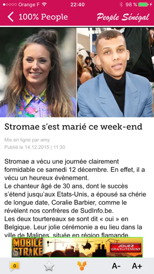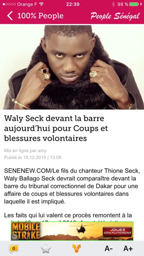 Suivez toute l'actualité People et Insolite du Sénégal et de l'Afrique à travers l'application People Senegal. L'application 100% People qui vient alimenter les informations en complément des autres plateformes people du Sénégal que sont FaceDakar, Feeling Dakar, ViePeople, SenePeople,... et tous les autres sites sénégalais.