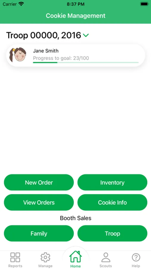 - Parents can manage their orders and individual booth sales, as well as see all the Girl Scouts in the troop along with parent contact information