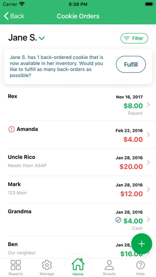 - See how much each Girl Scout has paid and how much they owe