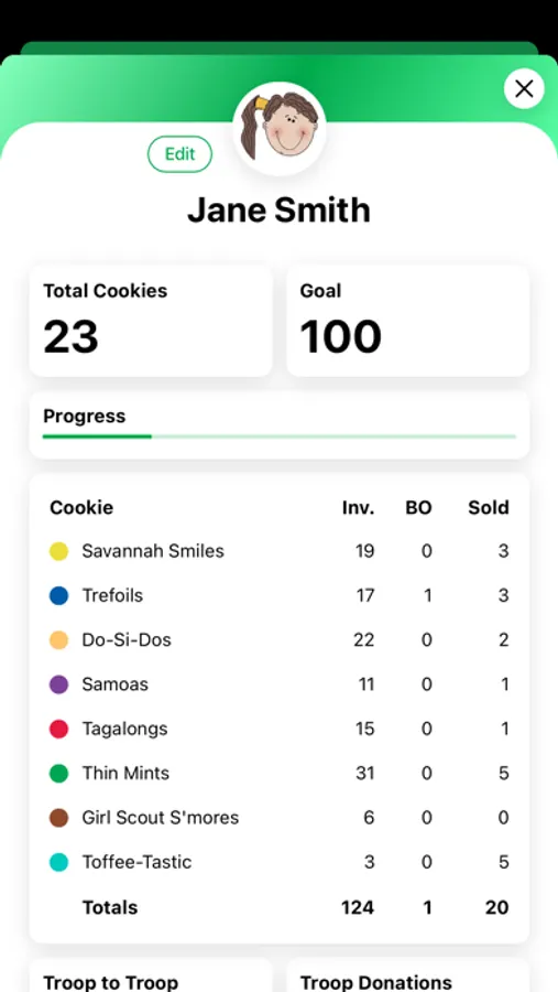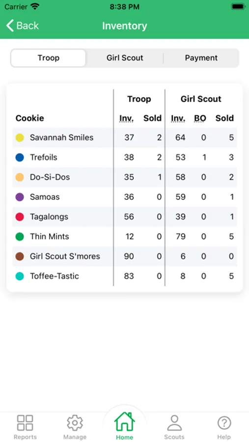 - See a breakdown of each Girl Scout's inventory, sold, and payment statuses