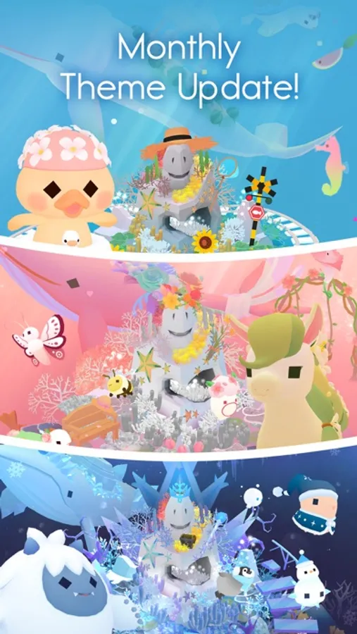 Leave everything behind for a moment and play the idle relaxing game 'Abyssrium.' Take a deep breath, play this beautiful game, and let your mind be stress-free. The beautiful and calming music, a variety of sceneries in the deep sea, and adorable fish friends will keep you entertained and stress-free. Just watching fish friends swim in the aquarium will help you feel relaxed and keep you calm. You will also be satisfied seeing the sea creatures grow throughout the gameplay.