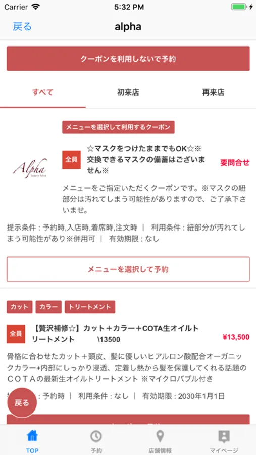 お得なクーポンが配信されます。ネット予約時にクーポン利用での予約も可能なので来店時もスムーズに施術頂けます。