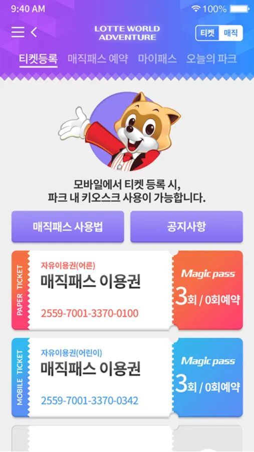 - 매직패스를 등록하시면 현장에서 사용 가능한 다양한 쿠폰도 증정됩니다.