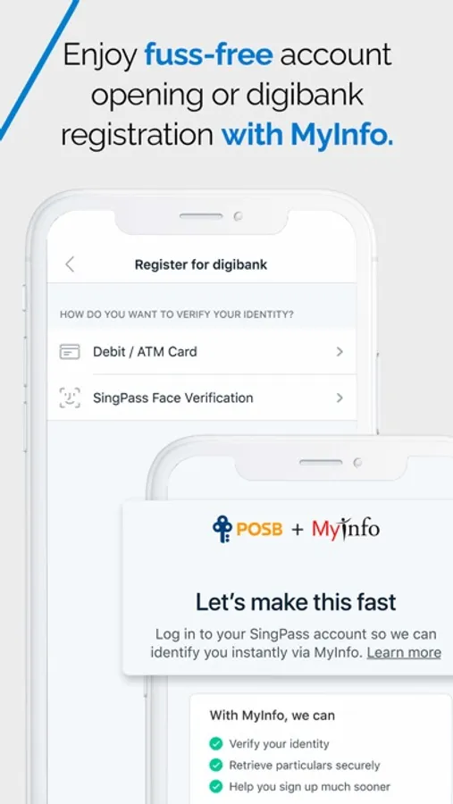- Step 2b: New customer: Sign up with MyInfo and start banking with a bank account, debit card, PayNow and PayLah! (for all nationalities – NEW!)